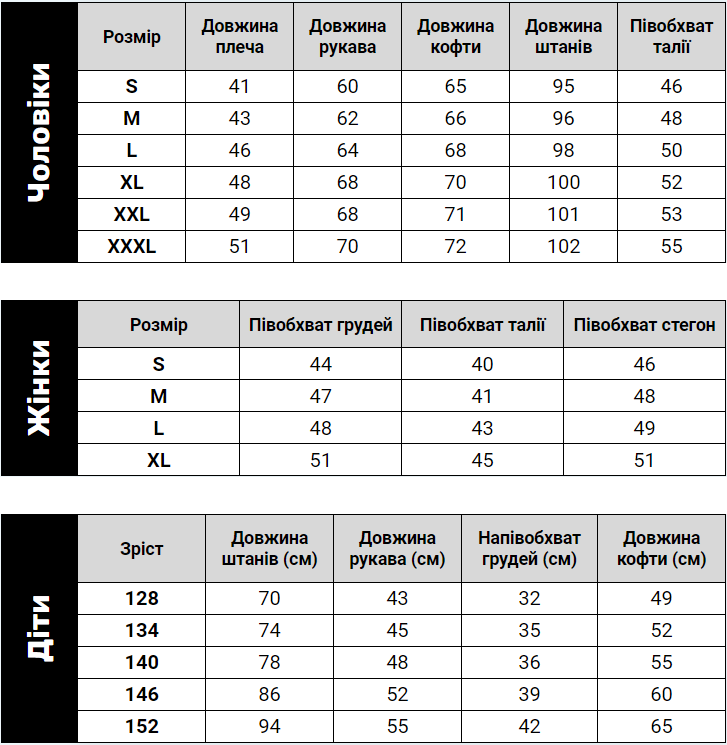 Дитячі розміри: 128-152